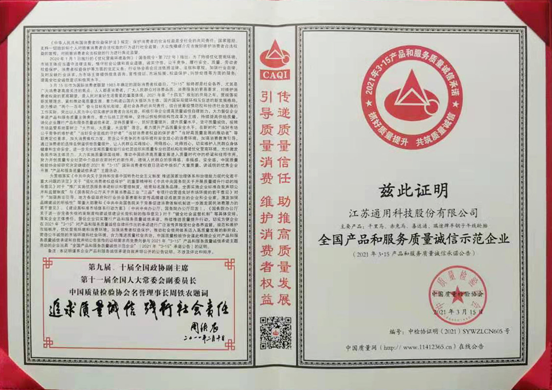 近日,在由中國質量檢驗協會主辦的2021年3·15國際消費者權益日產品和服務質量誠信承諾主題活動中,通用股份憑借優質的產品性能、穩