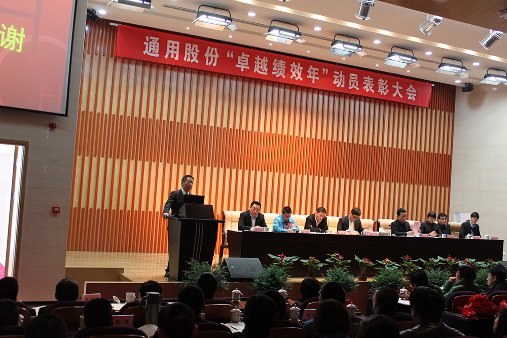 2月19日,通用公司在二廠四樓隆重召開 “卓越績效年”動員表彰大會。集團總裁周海江、人力資源部部長錢靜、品牌文化部部長王竹倩等集團領