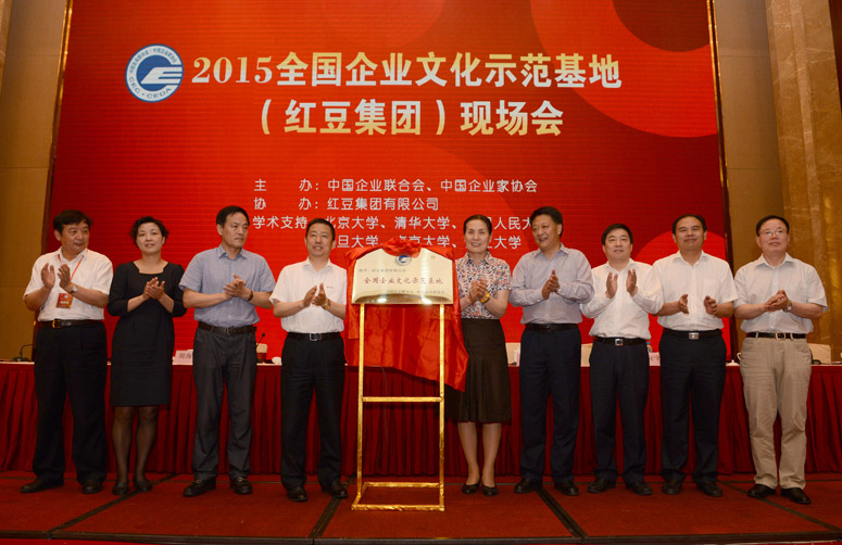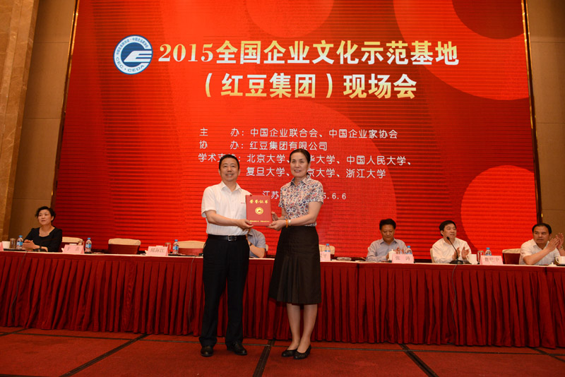 6月6日,在無錫市紅豆杉莊舉辦的2015全國(guó)企業(yè)文化示范基地(紅豆集團(tuán))現(xiàn)場(chǎng)會(huì)上,紅豆集團(tuán)被中國(guó)企業(yè)聯(lián)合會(huì)、中國(guó)企業(yè)家協(xié)會(huì)授予“全國(guó)企業(yè)