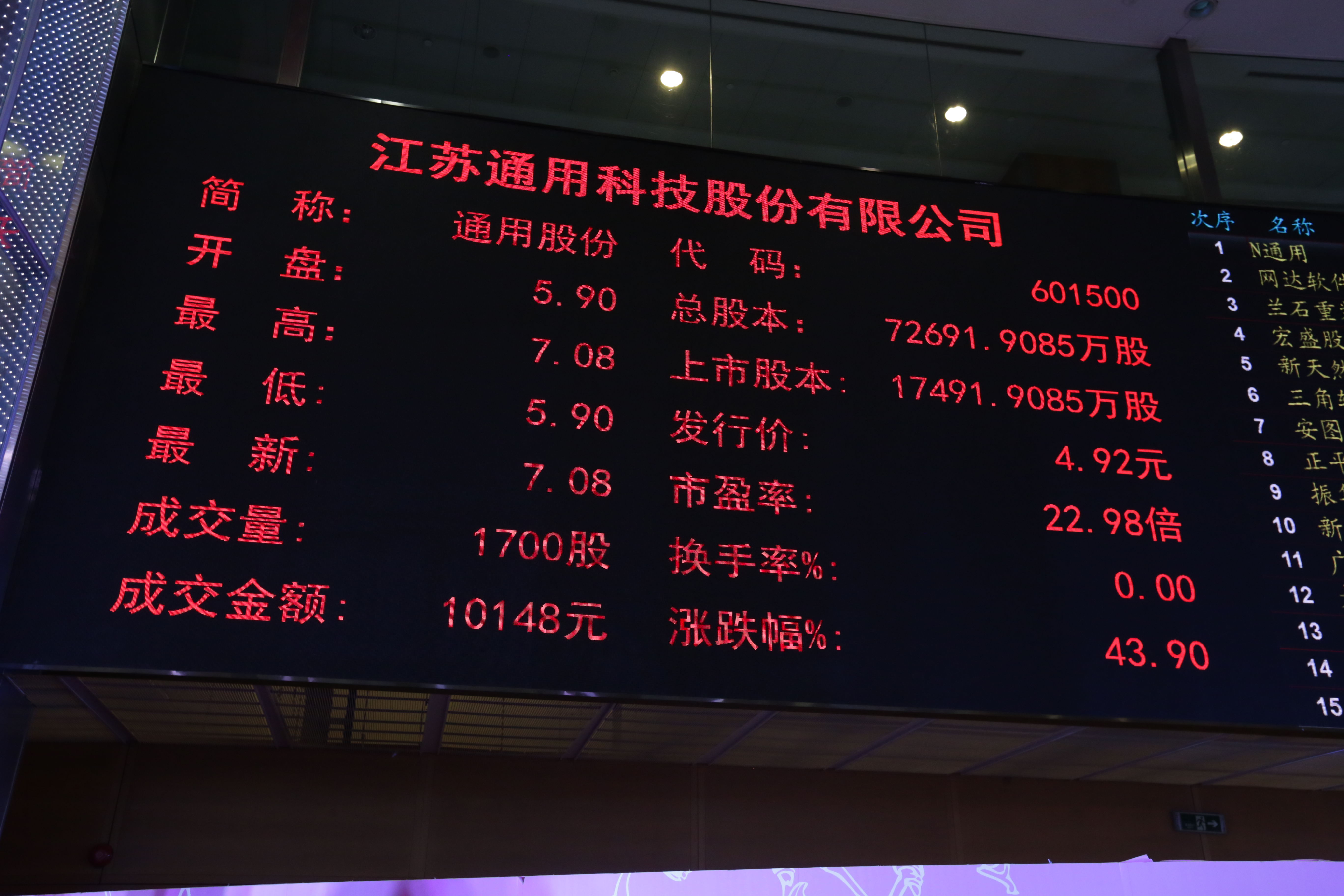 股市開盤,通用股份開盤價達5.9元,隨后股價被推至7.08元,較發(fā)行價上漲43.90 %,牢牢地封在漲停板上,充分說明資本市場對通用股份的信心。通用股份將充分利用上市契機,以打造民族輪胎高端品牌為己任,成為具有國際影響力的中國輪胎標桿企業(yè),為社會創(chuàng)造價值,給廣大投資者創(chuàng)造財富!
