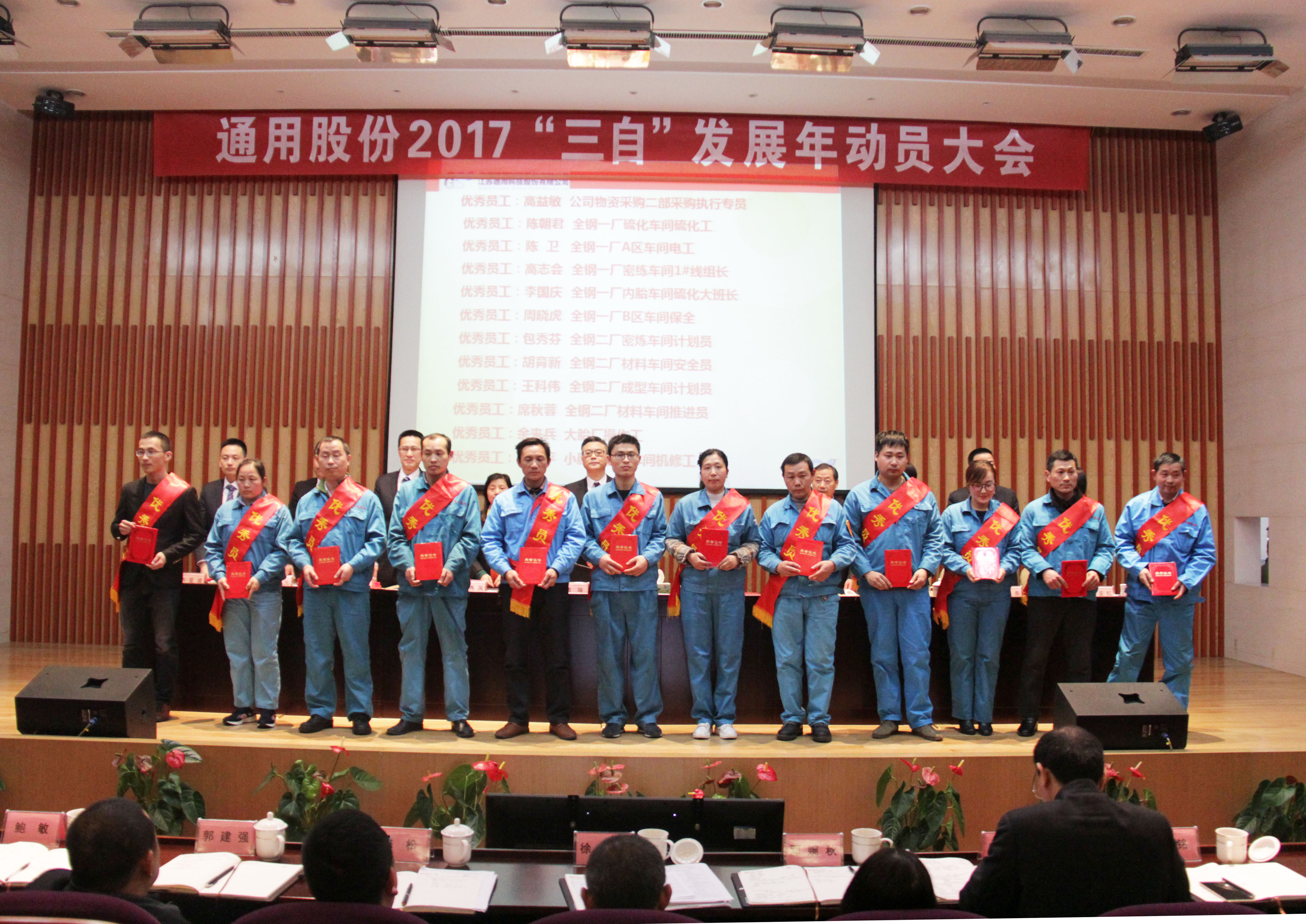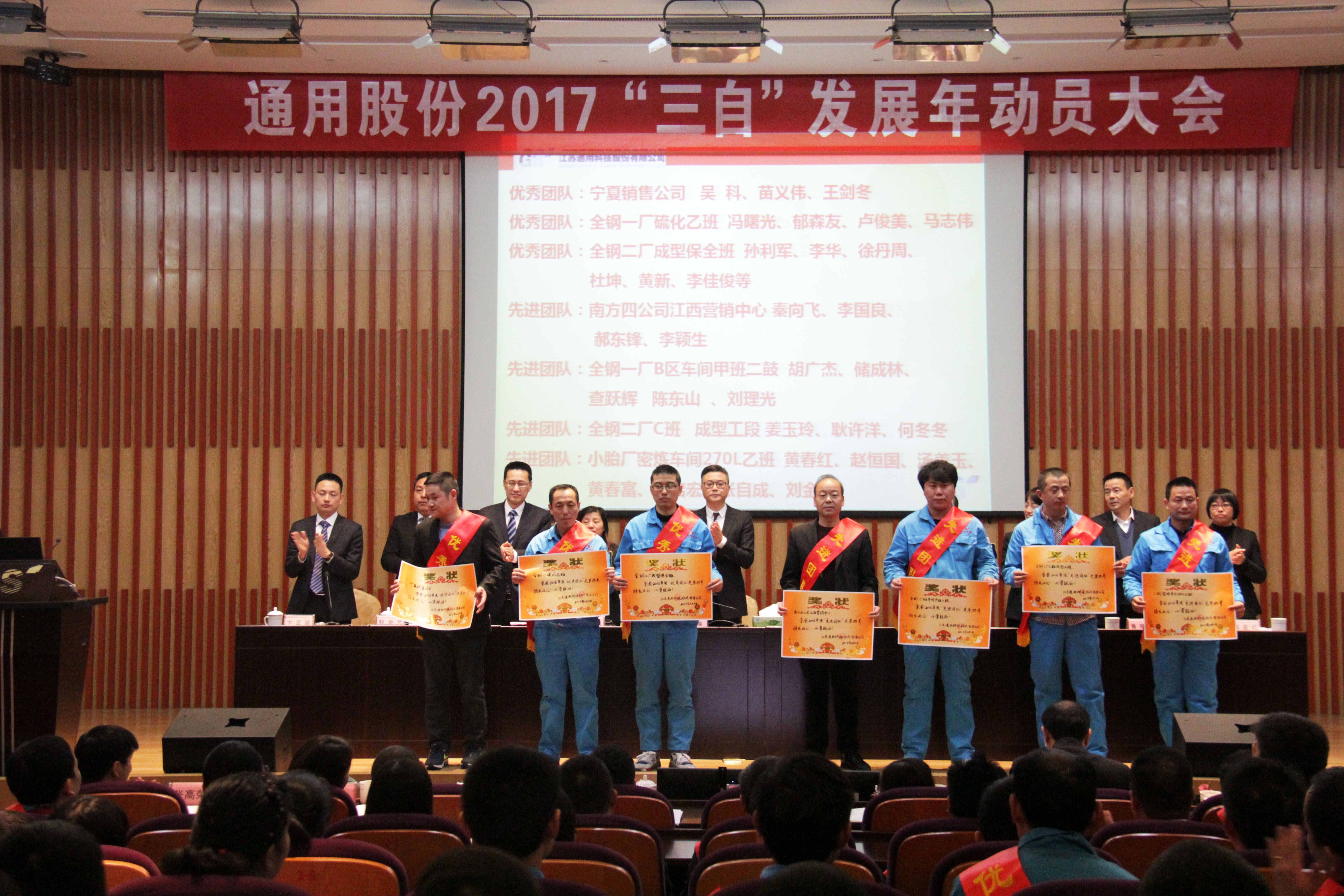 過(guò)去的2016伴隨著國(guó)民經(jīng)濟(jì)進(jìn)入新常態(tài),輪胎行業(yè)迎來(lái)了新一輪的挑戰(zhàn)。在全體通用人的奮斗拼搏下,通用股份不僅實(shí)現(xiàn)了IPO在上海證券交易所的成功上市,同時(shí)公司經(jīng)營(yíng)保持著強(qiáng)勁的發(fā)展勢(shì)頭,取得了驕人的成績(jī)。這是通用人智慧與汗水澆灌的結(jié)晶。大會(huì)隆重表彰了100名先進(jìn)和優(yōu)秀員工及團(tuán)隊(duì),他們默默耕耘在各條戰(zhàn)線(xiàn)上,以敬業(yè)奉獻(xiàn)與開(kāi)拓進(jìn)取詮釋了拼搏的價(jià)值,是所有人學(xué)習(xí)的楷模。
