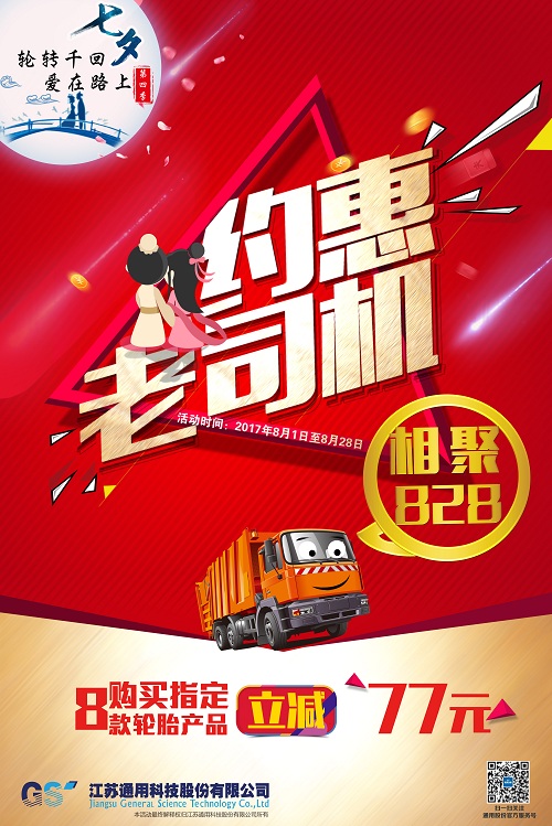 今年通用股份第四季七夕愛購月活動(dòng)更是加大力度,從8月1日至8月28日,為期28天,約惠老司機(jī)、相聚828, 優(yōu)惠普及風(fēng)暴,席卷全國!凡購買通用股份“千里馬、赤兔馬、騏馬、通運(yùn)、喜達(dá)通”五大品牌指定8款輪胎產(chǎn)品,立減77元,不忘初心,踐行以客戶為中心的承諾,各地經(jīng)銷商們也因地制宜,貼心地為司機(jī)們準(zhǔn)備了各種驚喜,路演所到之處,不僅匯聚了大規(guī)模的人流,還得到了老司機(jī)們的一致點(diǎn)贊。