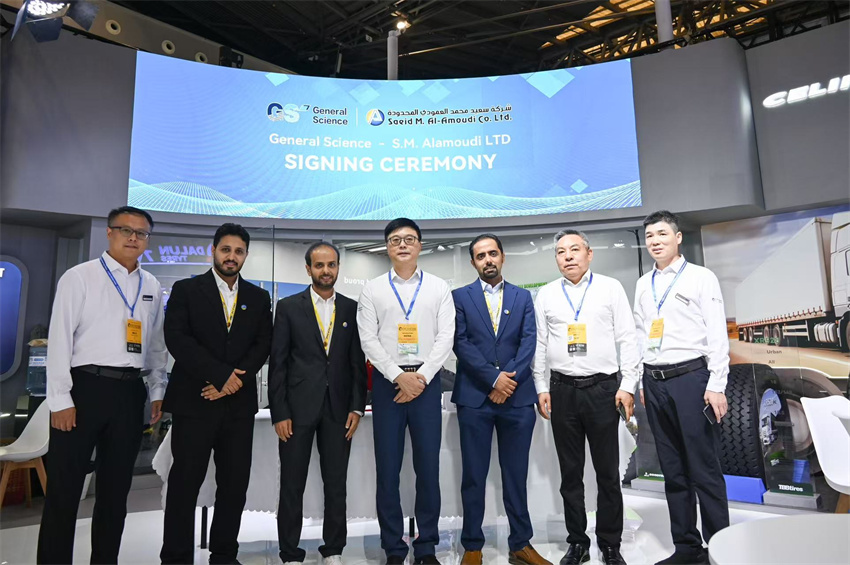 展會(huì)現(xiàn)場,通用股份的展臺(tái)前人頭攢動(dòng),洽談氛圍熱烈非凡。來自美國、歐洲、東南亞等地的眾多新客戶對(duì)公司的全球戰(zhàn)略深表認(rèn)同,并表達(dá)了強(qiáng)烈的合作意向。而將現(xiàn)場氣氛推向高潮的,無疑是與來自沙特、迪拜三家實(shí)力經(jīng)銷商的戰(zhàn)略簽約儀式。這一里程碑式的合作,不僅是海外優(yōu)質(zhì)渠道商對(duì)通用股份產(chǎn)品力與品牌價(jià)值的高度認(rèn)可,更標(biāo)志著公司在中東市場的渠道網(wǎng)絡(luò)得到進(jìn)一步拓展與深化,自主品牌的國際影響力邁上了新的臺(tái)階。