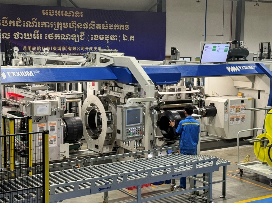 走進通用輪胎科技(柬埔寨)有限公司,目之所及都是智能化的生產設備,工廠內建有13個立體智能倉庫,91個機器人。令人驚嘆的是,從半部件到一條20寸的輪胎成型,僅需33秒的時間就完成了。該工廠自2023年5月正式開業以來,以打造智能化、自動化、信息化的現代化工廠為目標,推進智能制造和精益制造,僅一年時間,一期項目就實現了全面達產。如今,正在加快推進二期項目建設,一期、二期全部達產后,將具備年產850萬條半鋼子午胎和165萬條全鋼子午胎的生產能力。